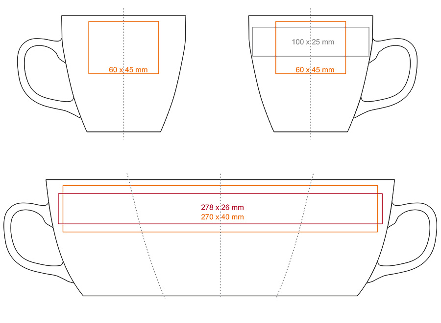 * W przypadku projektów wybiegających poza standardową powierzchnię nadruku prosimy o kontakt z działem handlowym.